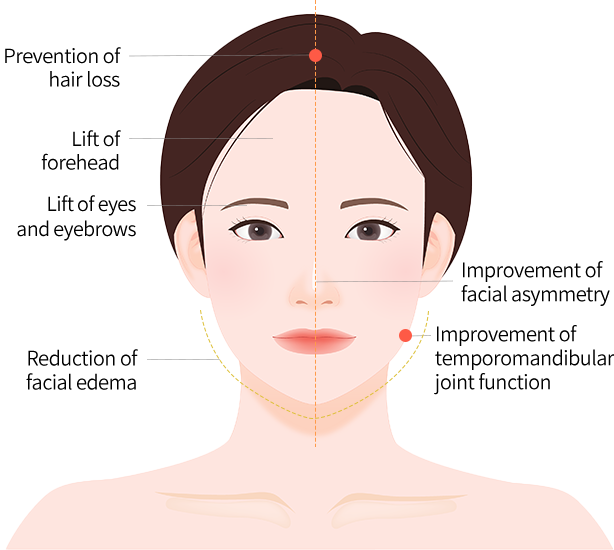 People who experienced minimal results with traditional lift can also achieve improved facial elasticity, headache relief, and hair loss prevention effect